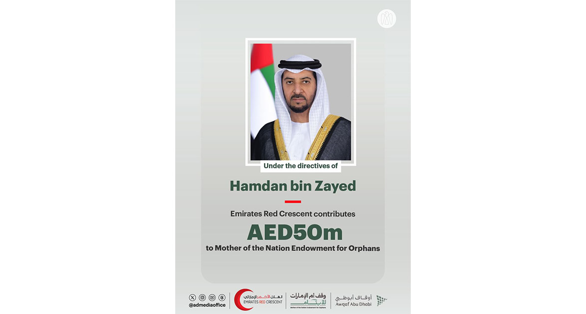 Under the directives of H.H. Sheikh Hamdan bin Zayed Al Nahyan, Ruler’s Representative in Al Dhafra Region and Chairman of the Emirates Red Crescent, the Emirates Red Crescent has contributed AED50 million to support the Mother of the Nation Endowment for Orphans.
